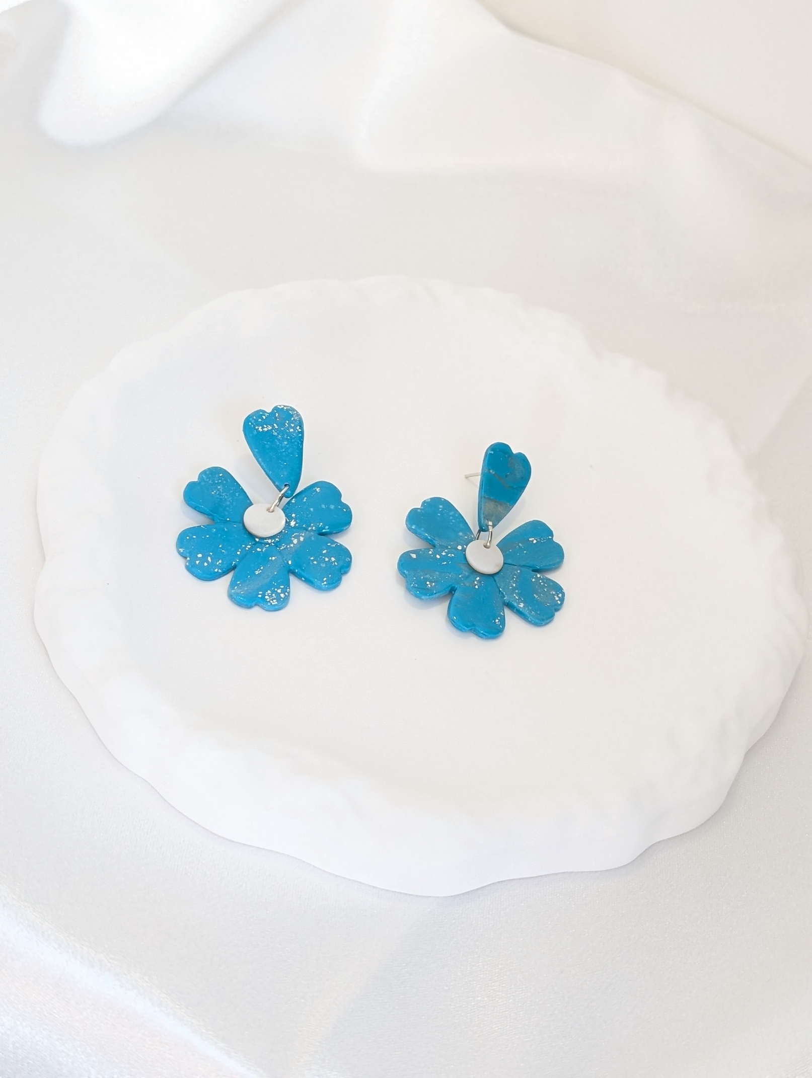 Ces boucles d’oreilles, baptisées ” Pétales d’Océan“, font partie d’une collection éphémère de EloCréa « Bleu Lagon »